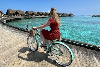 Een wekker heb je niet nodig in JOALI BEING. De gordijnen gaan open op het door mij op de iPad ingestelde tijdstip. Zodra ik mijn ogen opendoe, verwelkomt het uitzicht op zee me. Hemels! Na een heerlijk ontbijt – met ontelbare gezonde opties, maar ook een lekker croissantje, ontdek ik het eiland op mijn fiets. Op het naamplaatje van de fiets zie ik mijn eigen naam. Oog voor detail! De fiets is een handige standaard uitrusting van elke villa. En de perfecte manier om het eiland te verkennen.